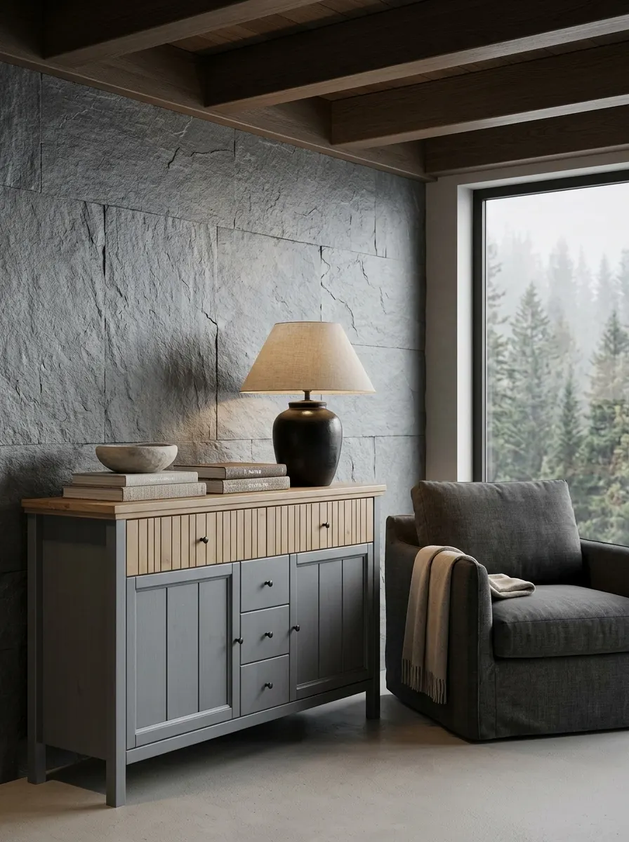 Для тонировки коллекции «Сканди» применяется краска на водной основе, через покрытие которой просматривается структура дерева. Внутренние стенки ящиков окрашены в цвет фасадов, что создаёт гармоничный образ. Выпускается тумба в двух тонировках: белый/антик и серый 7046/антик.