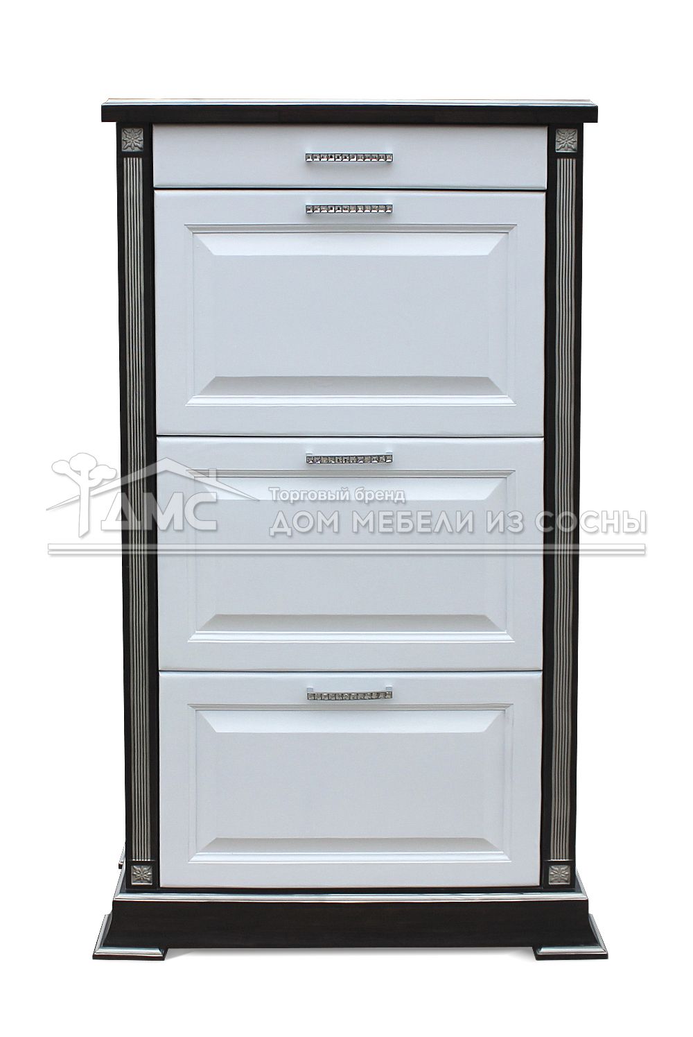 Особое внимание привлекает фасадное оформление с помощью фигурной резьбы, а также декор ручек. Эти детали придают обувнице изысканный вид, который станет украшением вашего коридора.