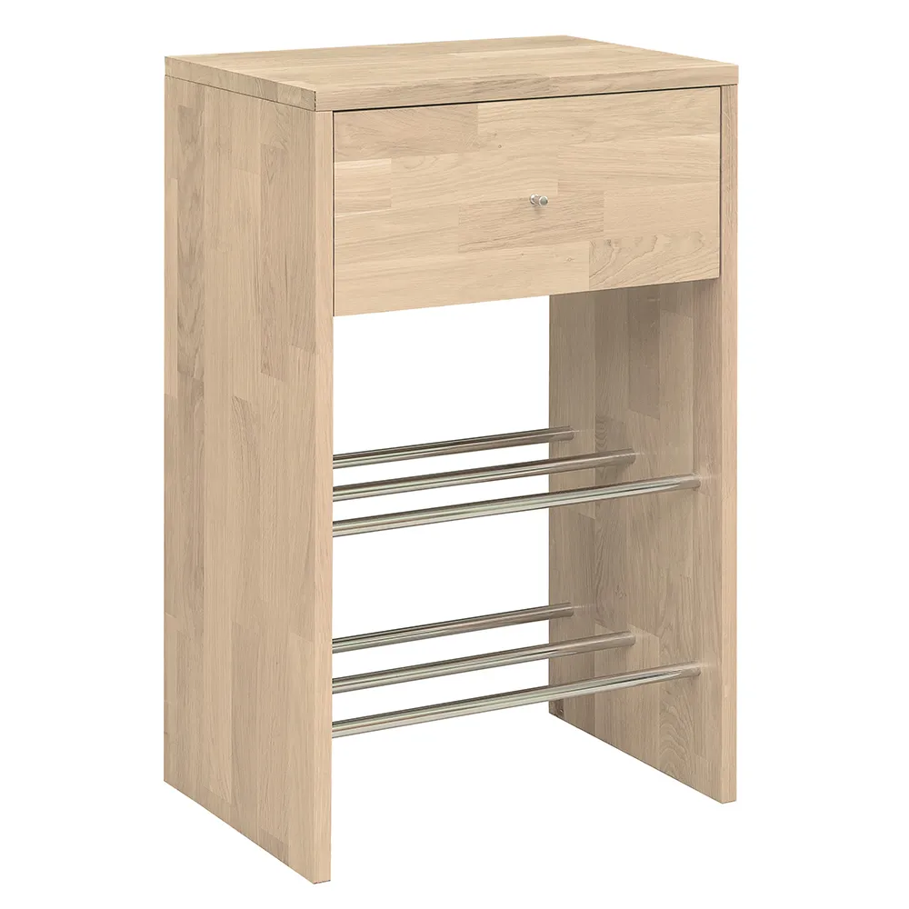 Стильная и удобная тумба для обуви «Терамо» изготавливается из натурального материала – массива дуба. Задняя стенка из фанеры в шпоне дуба. Есть возможность выбрать один из шести цветов отделки – бейц-масло, дуб паркетный, дуб венге, дуб отбеленный, темная вишня или итальянский орех.