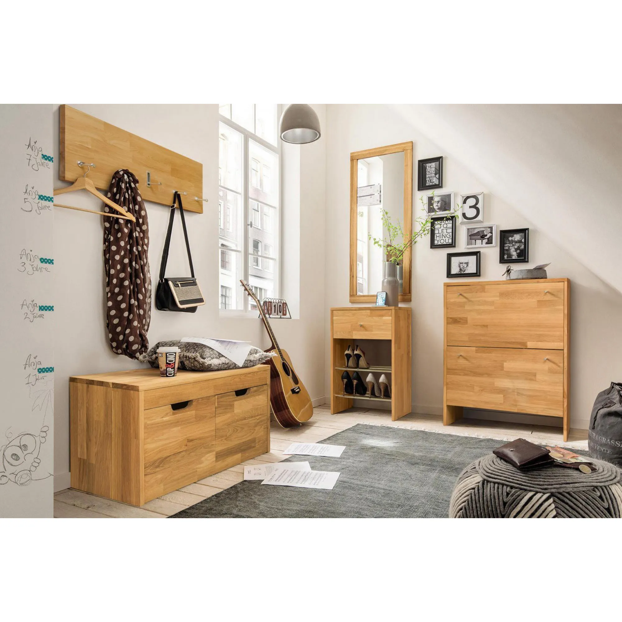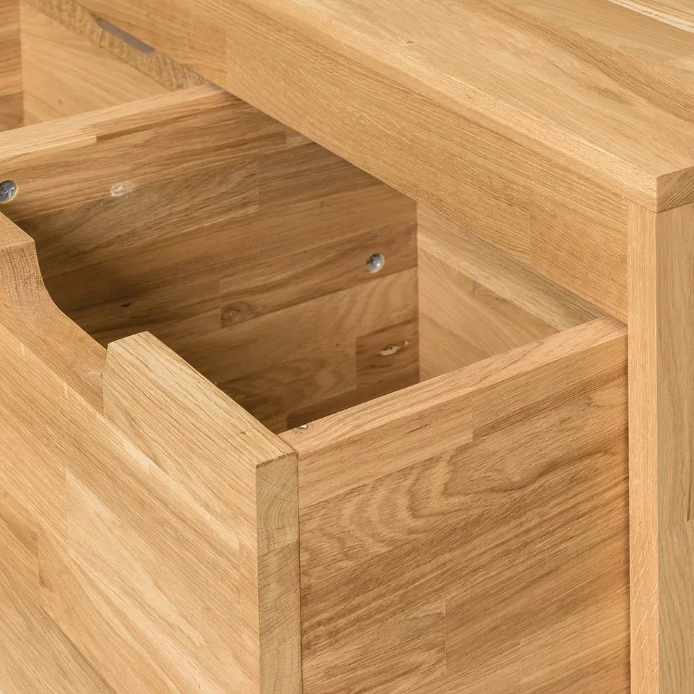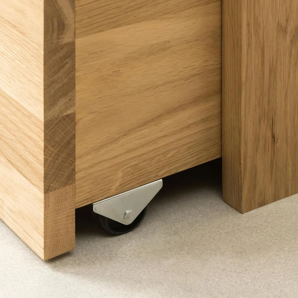 Стильная и удобная скамья для обуви «Терамо 2» изготавливается из натурального материала – массива дуба. Задняя стенка и днища ящиков сделаны из фанеры в шпоне дуба. Есть возможность выбрать один из шести цветов отделки – бейц-масло, дуб паркетный, дуб венге, дуб отбеленный, темная вишня или итальянский орех.
