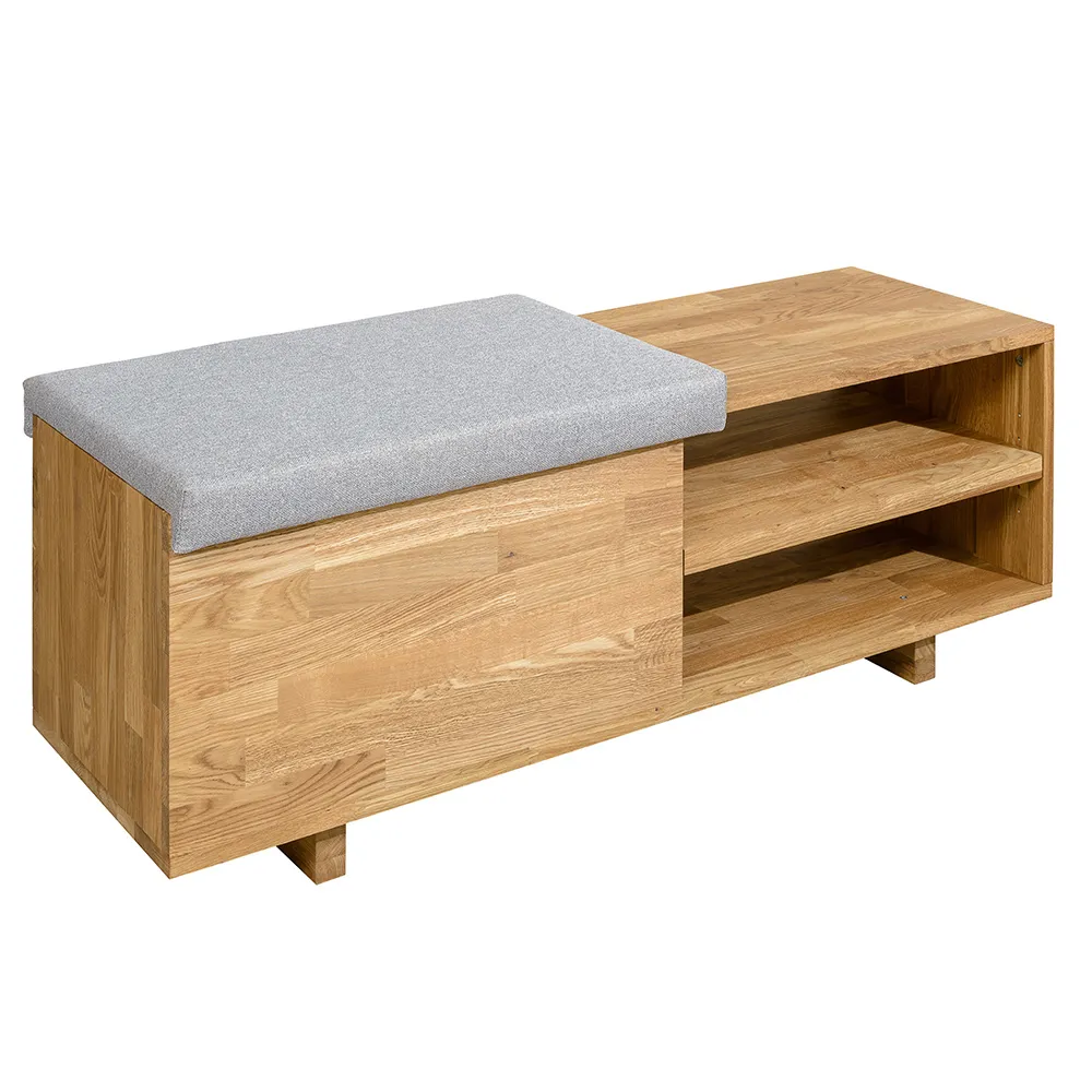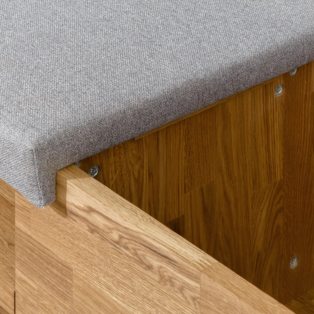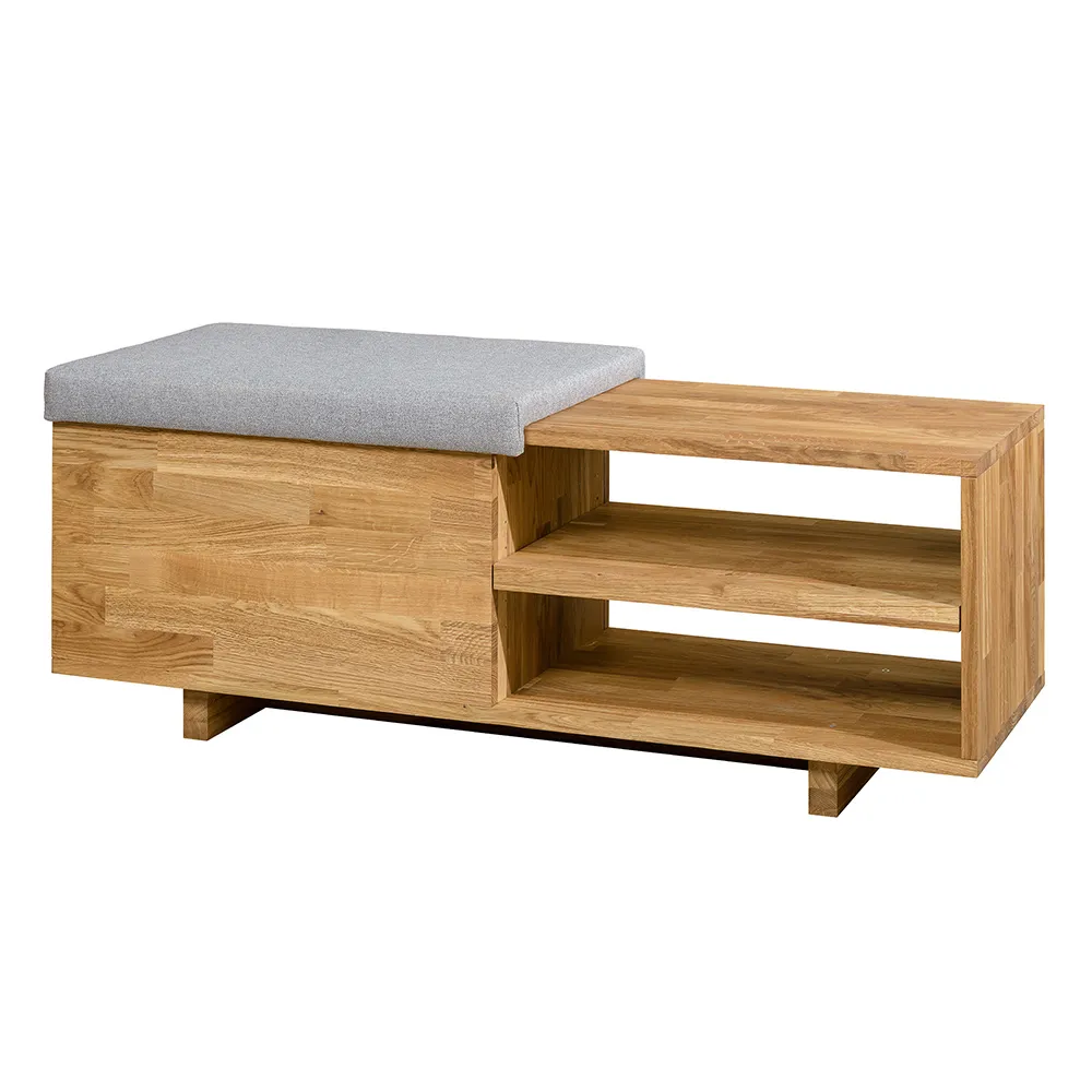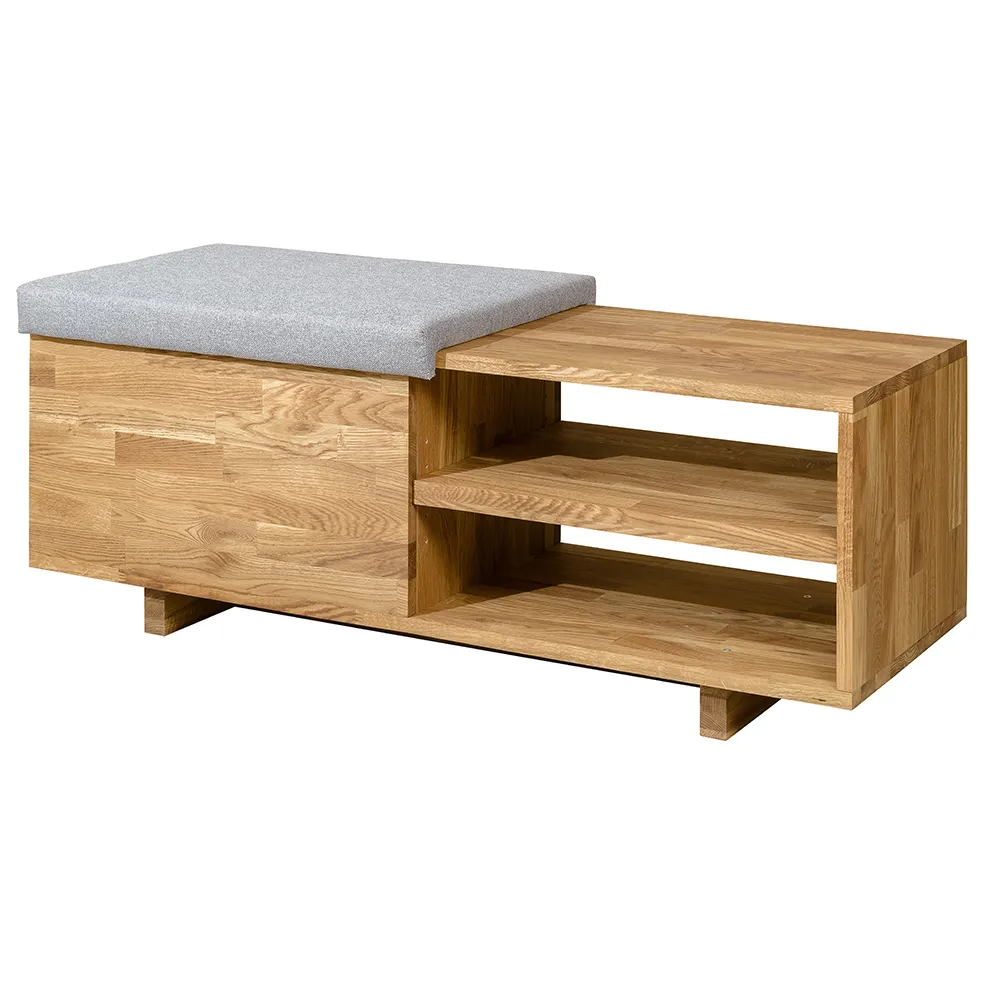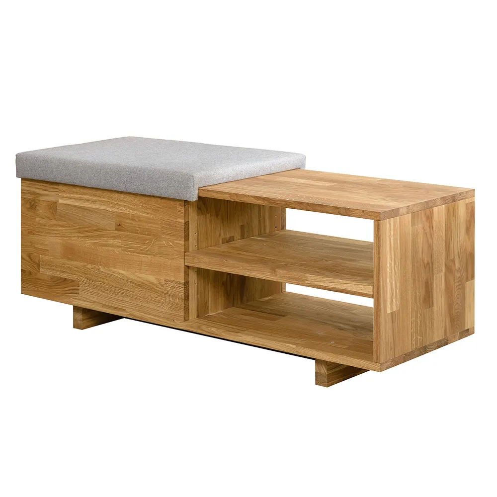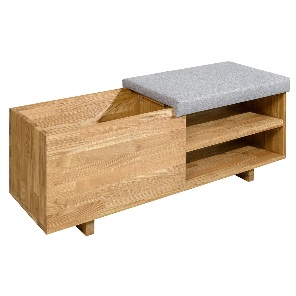 Стильная и удобная скамья для обуви «Рэйни» изготавливается из натурального материала – массива дуба. Есть возможность выбрать один из шести цветов отделки – бейц-масло, дуб паркетный, дуб венге, дуб отбеленный, темная вишня или итальянский орех.
