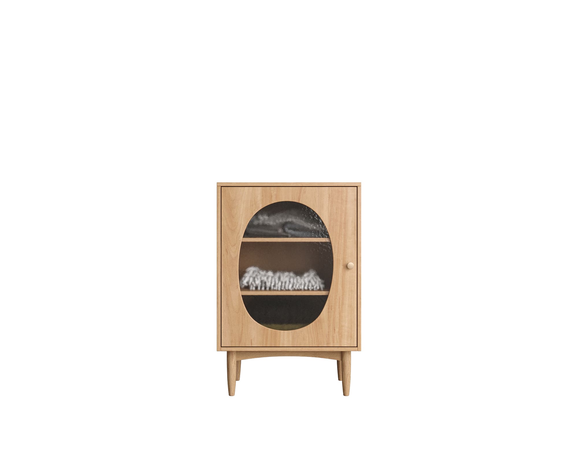 Фасад с матовым стеклом в овальном обрамлении придает тумбе